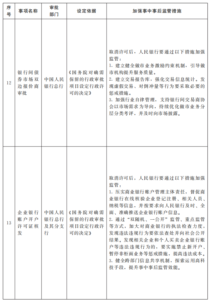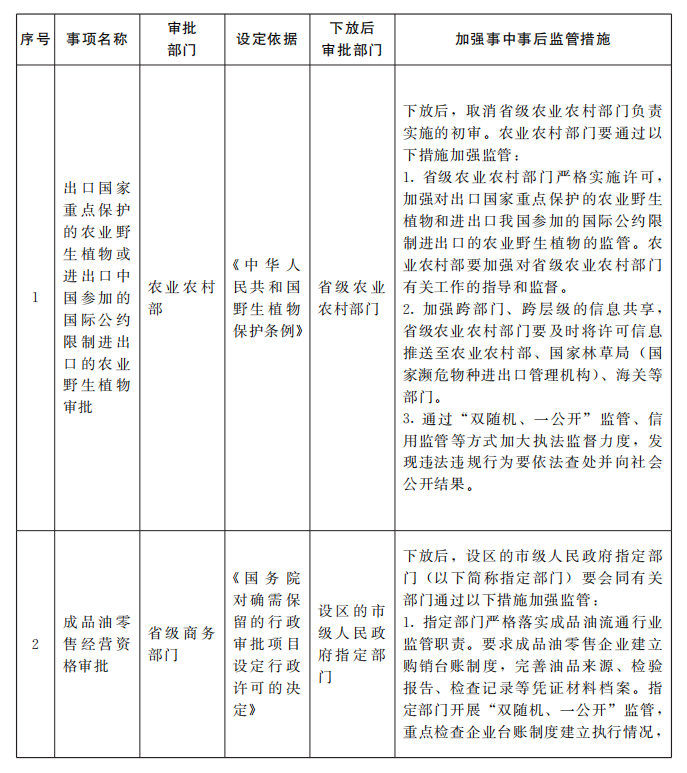 各地区、各有关部门要抓紧做好取消和下放行政许可事项的贯彻落实工作,进一步细化改革配套措施,加强和创新事中事后监管,确保放得开、接得住、管得好。自本决定发布之日起20个工作日内,国务院有关部门要向社会公布事中事后监管细则,并加强宣传解读和督促落实。