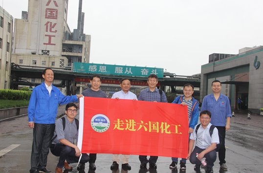 中国化工报社副社长张健秋(左五),六国化工党委书记、总经理缪振虎(左四)等与调研团成员合影