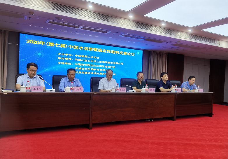 2020年8月29日,由中国氮肥工业协会主办、河南心连心化学工业集团股份有限公司协办、中国科学院沈阳应用生态研究所、武威金仓生物科技有限公司、甘肃亚盛农业综合服务有限公司支持的“2020年(第七届)中国水溶肥暨稳定性肥料发展论坛”在甘肃武威成功召开。中国氮肥工业协会理事长顾宗勤、中国农业大学张福锁院士、全国农业技术推广服务中心首席专家高祥照、生态环境部南京环境科学研究所王文林研究员等领导专家出席,重点水溶肥及稳定性肥料相关企业代表共计200余人参会。会议由中国氮肥工业协会秘书长王立庆主持。