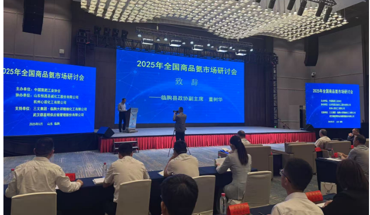 2025年5月13日,由中国氮肥工业协会主办的“2025年全国商品氨行业研讨会”在山东临朐顺利召开。中国氮肥工业协会理事长顾宗勤、临朐县政协副主席董树华、山东恒昌圣诚化工股份有限公司董事长尹兴磊、河南心连心化学工业集团股份有限公司总经理助理刘欢庆、三义集团・临朐大祥精细化工有限公司总经理高海生、武汉群星明供应链管理股份有限公司总经理蒋D出席会议。临朐县各政府部门代表,国内合成氨及氨水重点生产加工、贸易流通和下游用户等企业代表共计110余人参加会议。