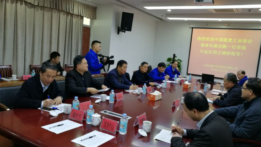 3月12日下午调研组在安徽省化肥工业协会理事长杨青元陪同下赴中盐安徽红四方股份有限公司调研。公司常务副总经理罗斌介绍了企业基本情况、2017年生产经营情况、2018年工作安排以及二期乙二醇项目建设情况和信用体系、产品追溯体系建设情况。方立贵董事长介绍了公司发展定位、当前指导思想和下一步战略定位以及发展中的体会,并提出了政策建议。