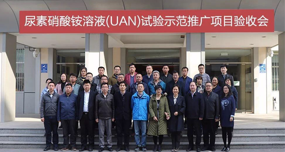 2019年3月26日,中国氮肥工业协会和相关委托企业(天脊集团兴化实业有限公司、安徽淮化股份有限公司、鲁西化工集团股份有限公司、河南晋开化工投资控股集团有限责任公司、河南心连心化学工业股份有限公司、浙江今晖新材料股份有限公司),在北京组织了“尿素硝酸铵溶液(UAN)试验示范推广”项目验收会。该项目执行时间为2016年1月-2018年12月,由中国农业科学院农业资源与农业区划研究所牵头,16家省级科研、推广等试验协作单位参与。历时三年,项目在山东、河南、河北、北京、内蒙古、新疆、安徽、四川、湖南等9个省(自治区、直辖市)主要种植区进行,涉及马铃薯、棉花、玉米、小麦、水稻、油菜、番茄、大蒜、苹果、桃等10种作物及6种土壤类型,安排了UAN及其与磷、钾、中微量元素、肥料增效剂NBPT配施效果试验示范,共计50个试验点。