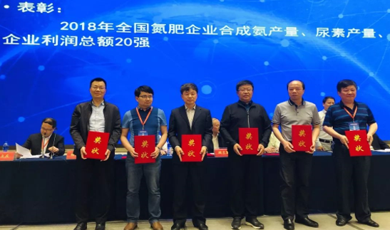 会议对2018年在全国氮肥行业中合成氨产量、尿素产量、利润总额排名前20位的先进企业,分别授予“2018年全国氮肥企业合成氨产量20强”、“2018年全国氮肥企业尿素产量20强”、“2018年全国氮肥企业利润总额20强”称号。