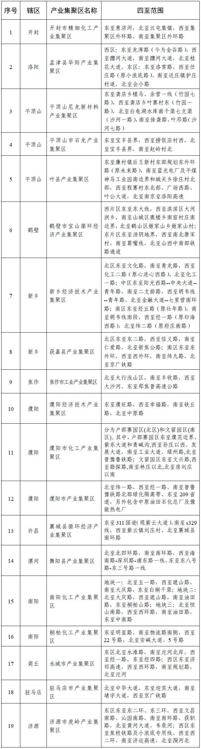 河南省化工园区名单(第一批)