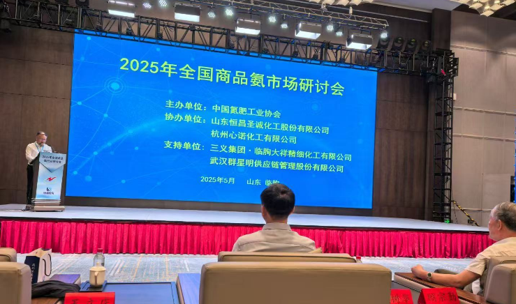 2025年5月13日,由中国氮肥工业协会主办的“2025年全国商品氨行业研讨会”在山东临朐顺利召开。中国氮肥工业协会理事长顾宗勤、临朐县政协副主席董树华、山东恒昌圣诚化工股份有限公司董事长尹兴磊、河南心连心化学工业集团股份有限公司总经理助理刘欢庆、三义集团・临朐大祥精细化工有限公司总经理高海生、武汉群星明供应链管理股份有限公司总经理蒋D出席会议。临朐县各政府部门代表,国内合成氨及氨水重点生产加工、贸易流通和下游用户等企业代表共计110余人参加会议。
