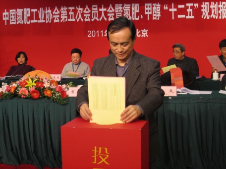 按照国务院国资委和民政部对社团管理的相关管理规定,大会对《中国氮肥工业协会章程》进行了修改,投票选举产生了第五届理事会和领导国成员。李寿生当选第五届氮肥协会理事长,中海化学杨业新、湖北宜化蒋远华、中石油张天才、山西晋烟集团王毅等当选高级副理事长,北方华锦化工于国宏、王世兆、王光彪、史习能、冯志斌、刘兴旭、汤广斌、李汝新、杨青元、张兆振、张金成、陈晓军、贾栓、顾宗勤、凌晓东、谈福元、常怀春、谢绍颖、靳小桂、裴西平等20人当选副理事长,张荣当选秘书长。大会推选潘德润、孔祥琳、刘淑兰、杨春升、孟炎生、邵寅初为中国氮肥工业协会第五届名誉理事长。