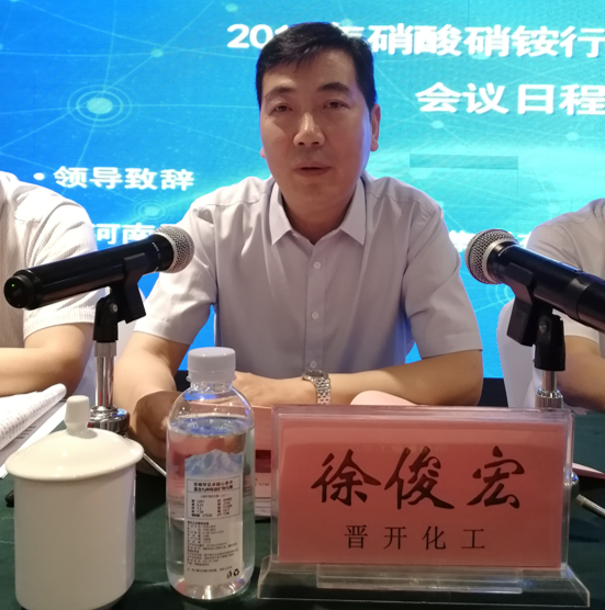 河南晋开化工投资控股集团有限责任公司总经理徐俊宏做大会致辞,他对各位代表的到来表示诚挚欢迎,并介绍了晋开集团合成氨、硝铵等氮肥产品生产与装置情况。他强调“硝酸硝铵行业会议”为行业提供了良好的交流平台,促进了技术与市场信息的交流,本次会议在新形势下将会促进行业发展,提供发展新思路与改革新方向。