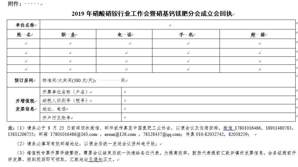 附件:2019年硝酸硝铵行业工作会回执