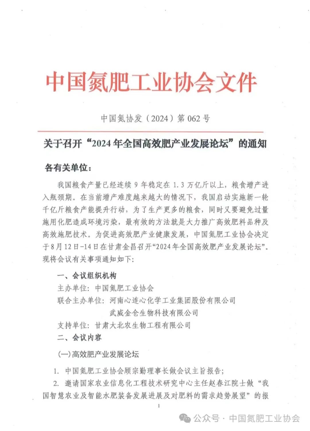 关于召开“2024年全国高效肥产业发展论坛”的通知