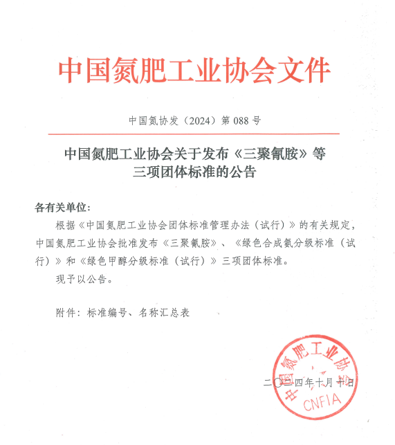 中国氮肥工业协会关于发布《三聚氰胺》等三项团体标准的公告