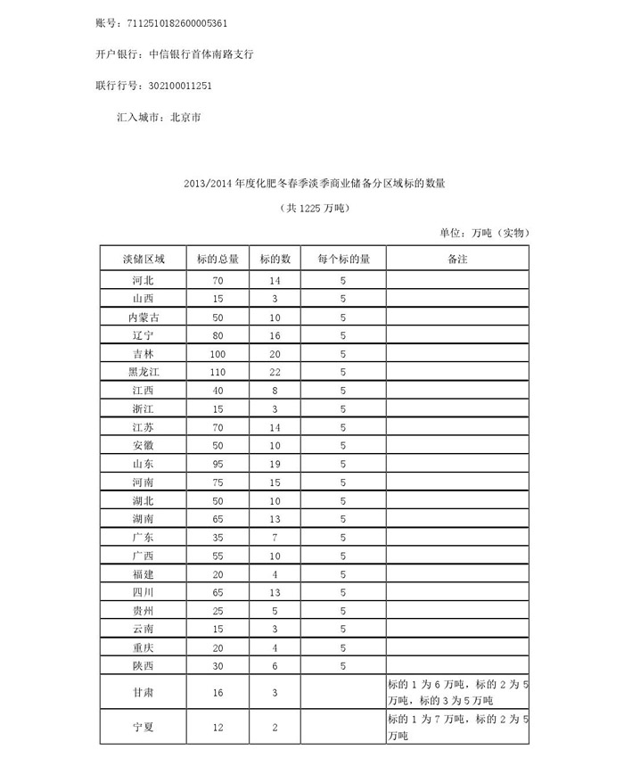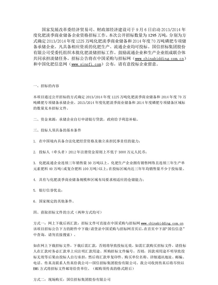 2013/2014年度化肥淡储及2014年度磷肥专储承储企业招标启动