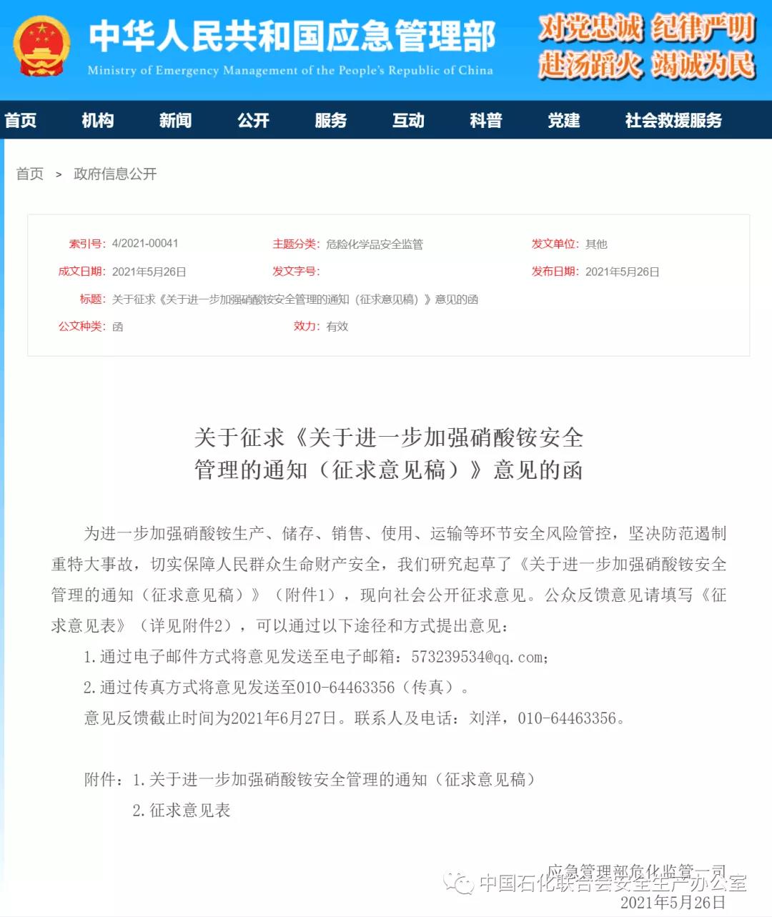 关于进一步加强硝酸铵安全管理的通知(征求意见稿)