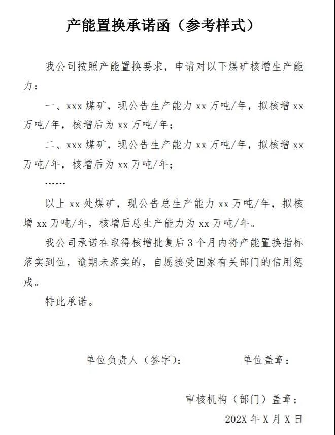 为扎实做好迎峰度夏度冬煤炭保供工作,推动优质先进产能加快释放,保证煤炭稳定供应,现就实行核增产能置换承诺有关事宜通知如下: